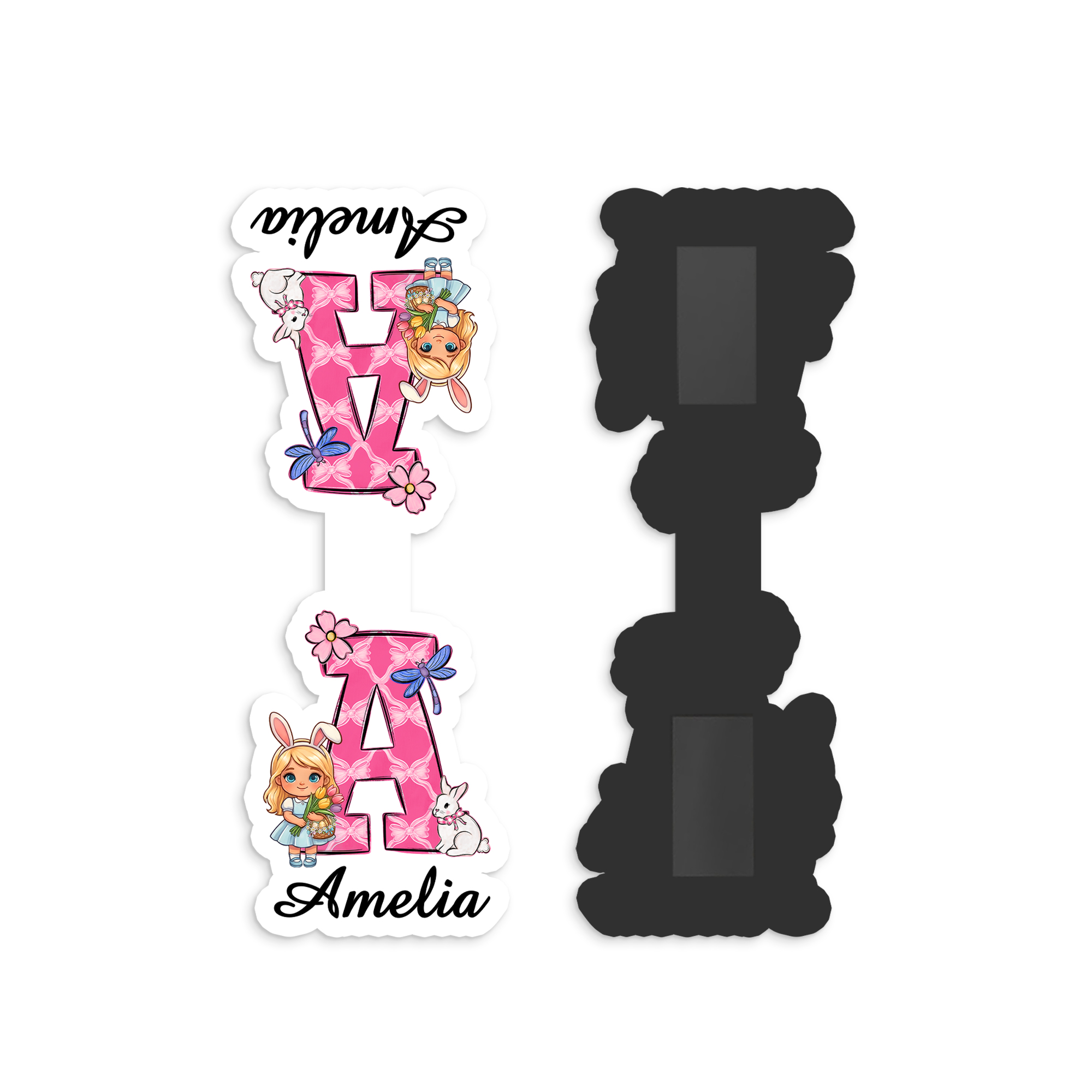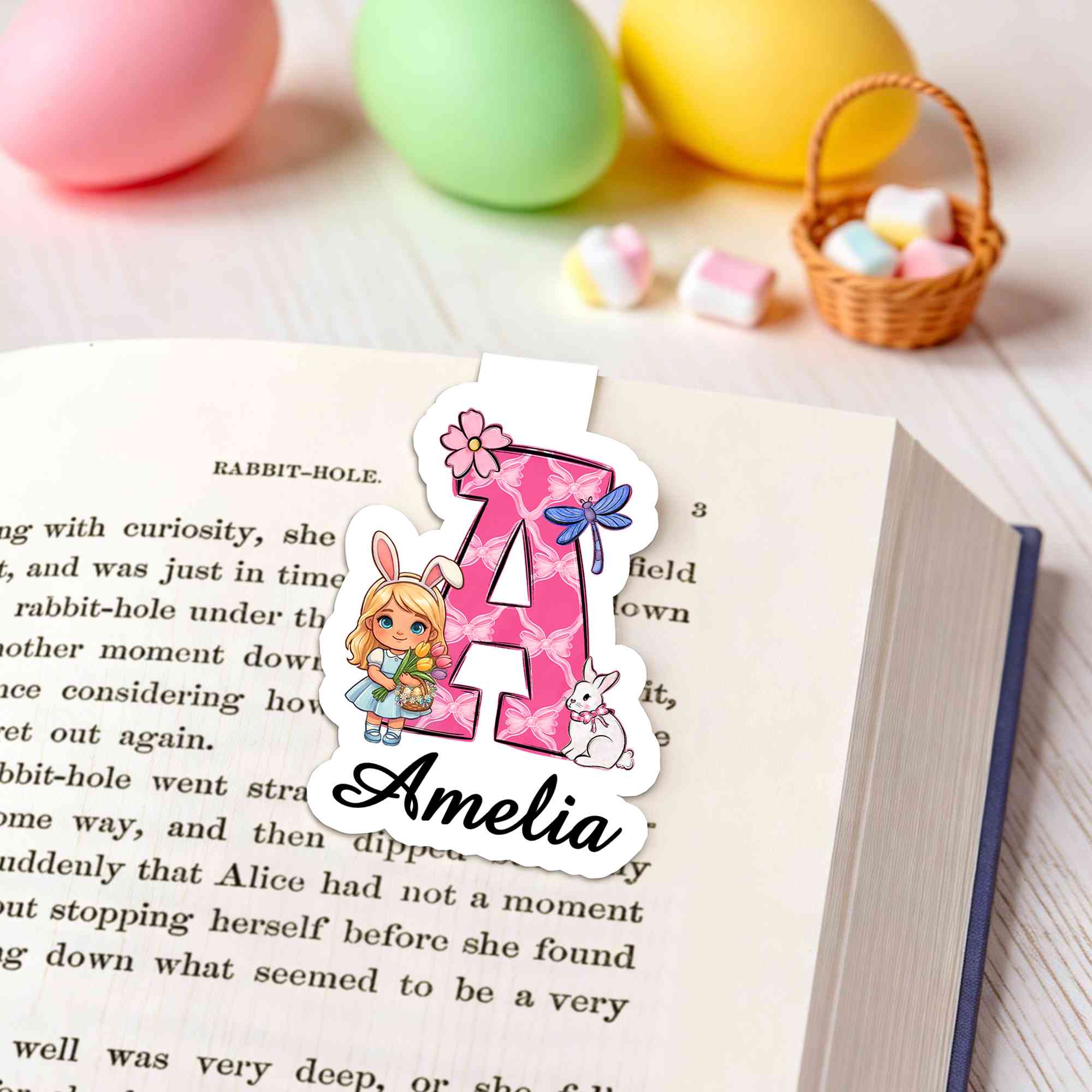 Custom Name Cartoon Easter Boy/Girl Character Alphabet Bookmark, Magnetic Bookmark Clip, Reading Accessory, Birthday/Easter Gift for Book Lovers/Kids